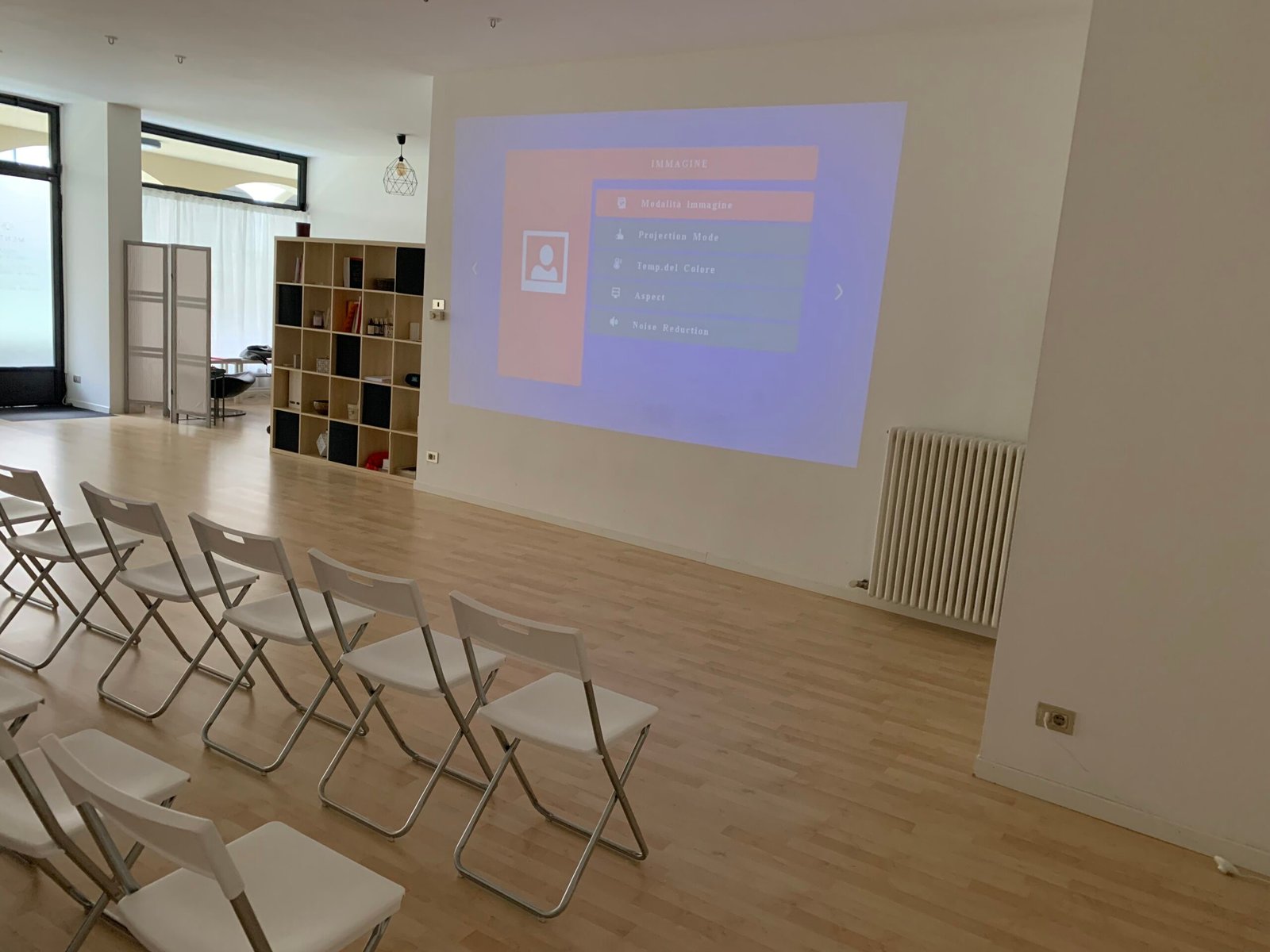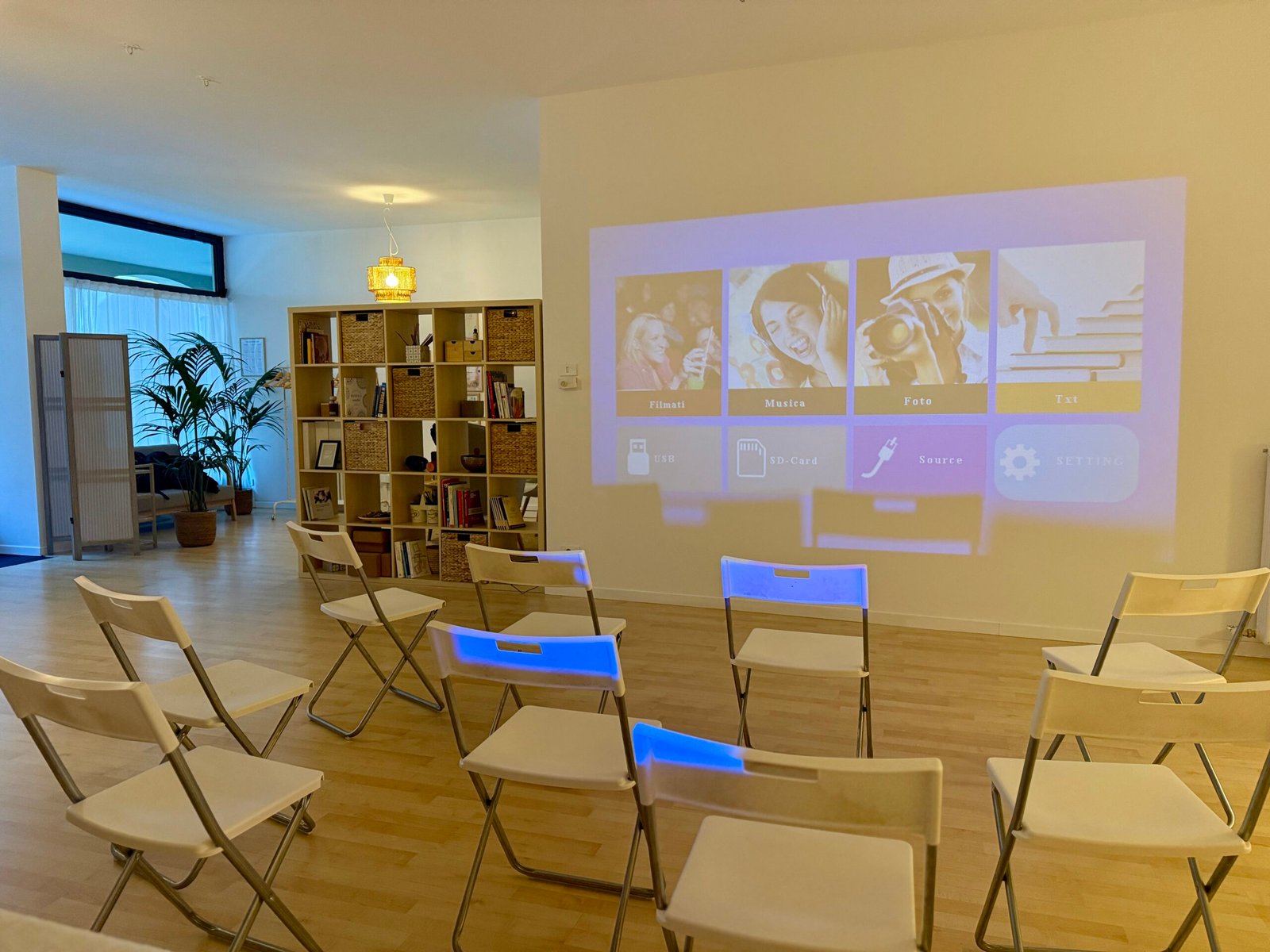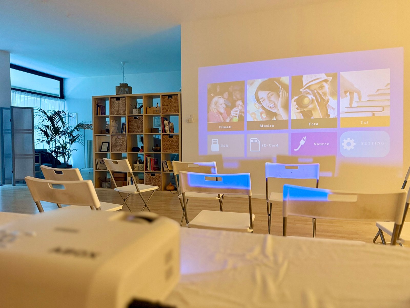 Proiettore e sedie per organizzare la stanza al meglio