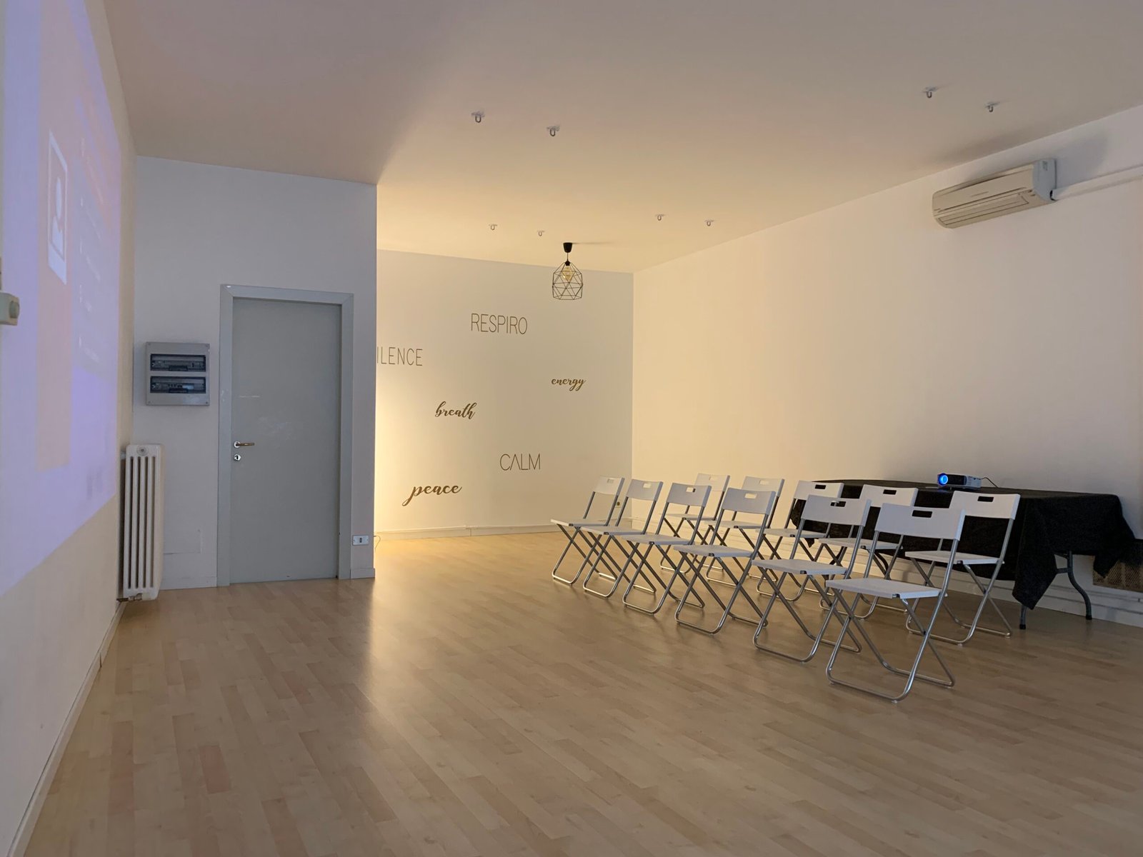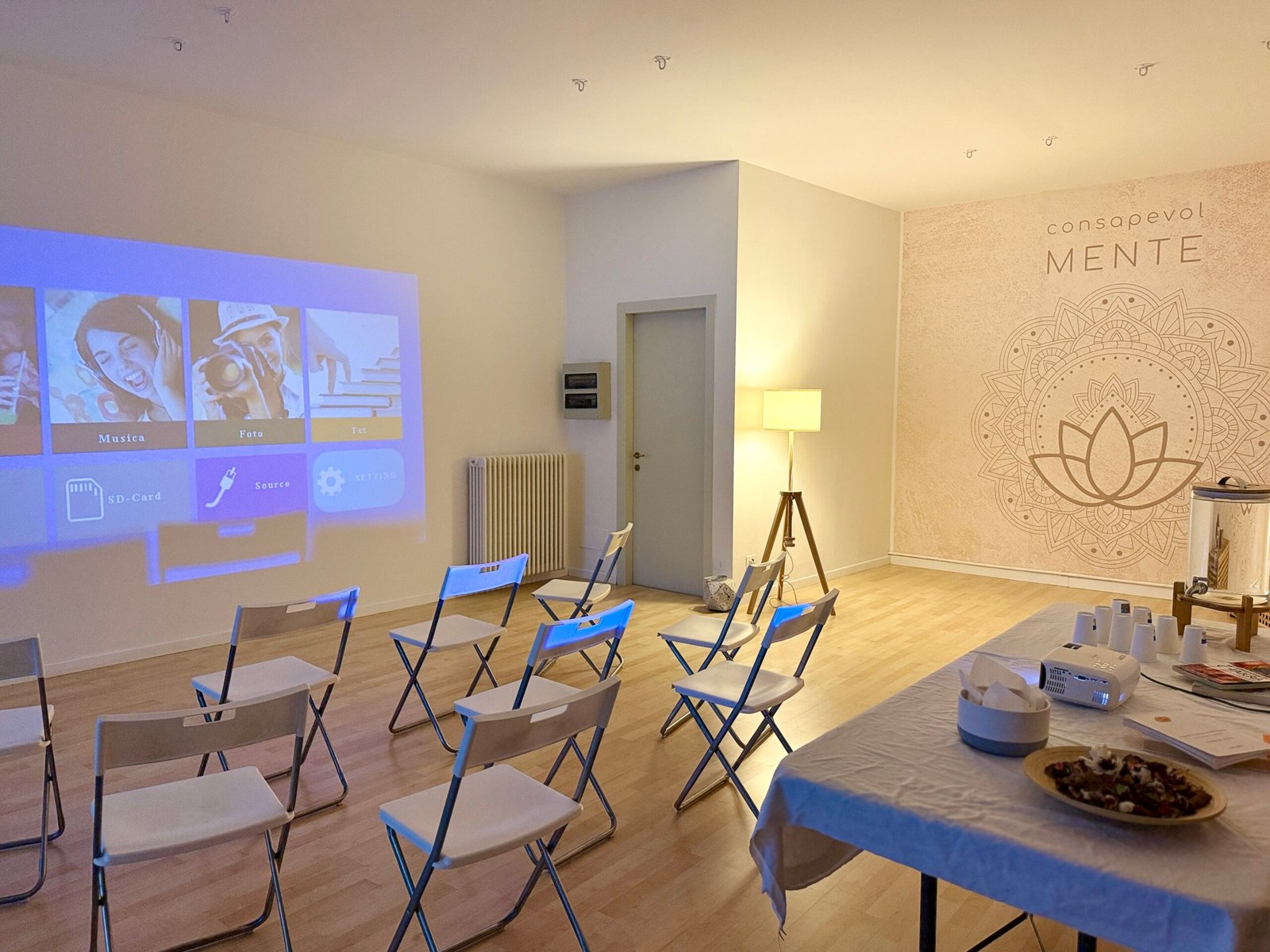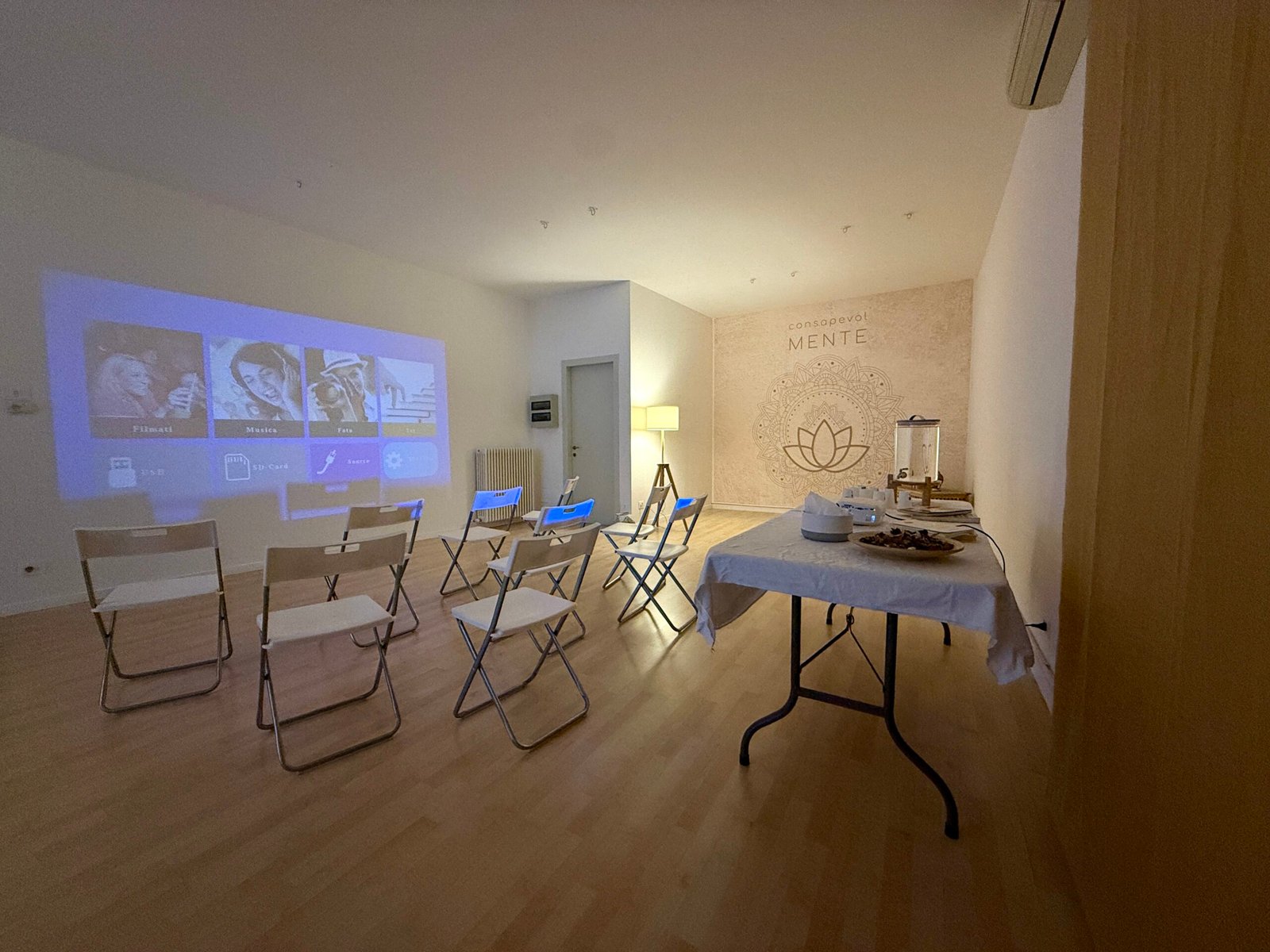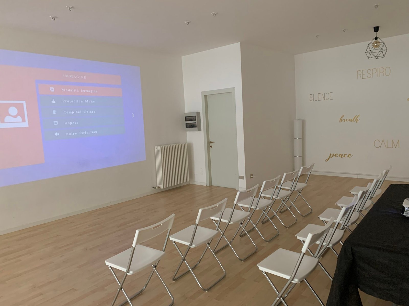 Proiettore e sedie per organizzare la stanza al meglio